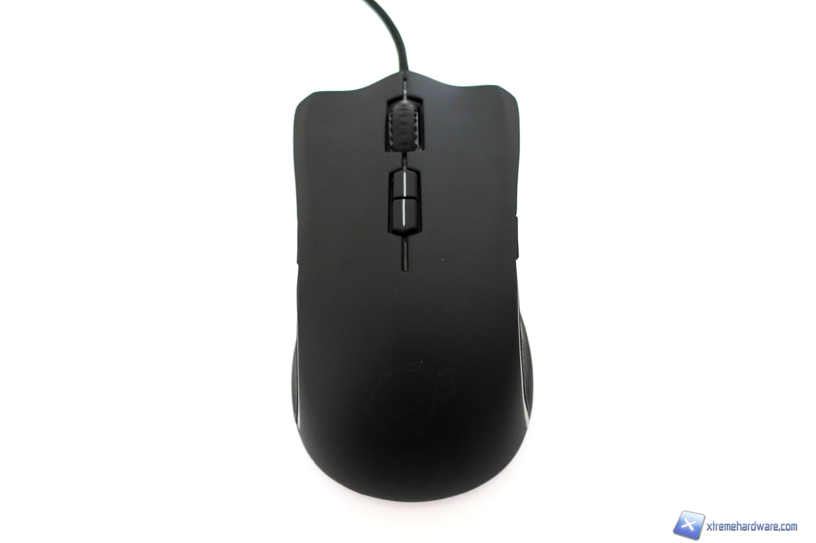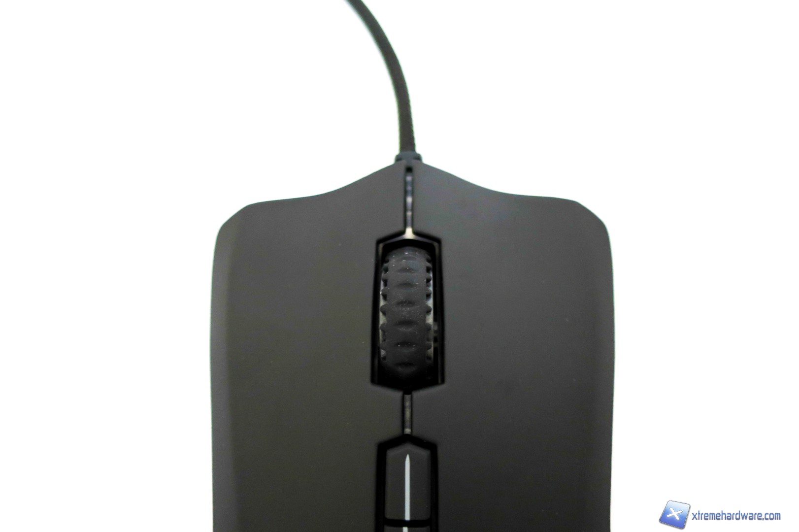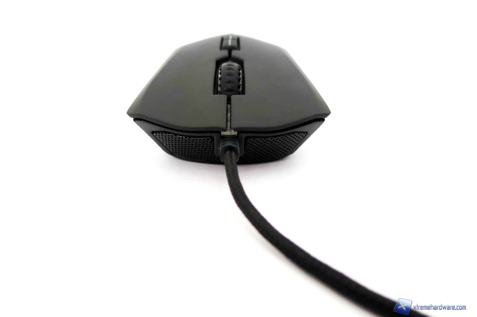 La parte frontale del mouse presenta un aspetto aggressivo dato anche dalle griglie nel alto destro e sinistro. Inoltre, notiamo la classica forma dei tasti cliccabili destro e sinistro come sia perfettamente ergonomica e incava in modo tale da posizionare le dita facilmente e naturalmente.