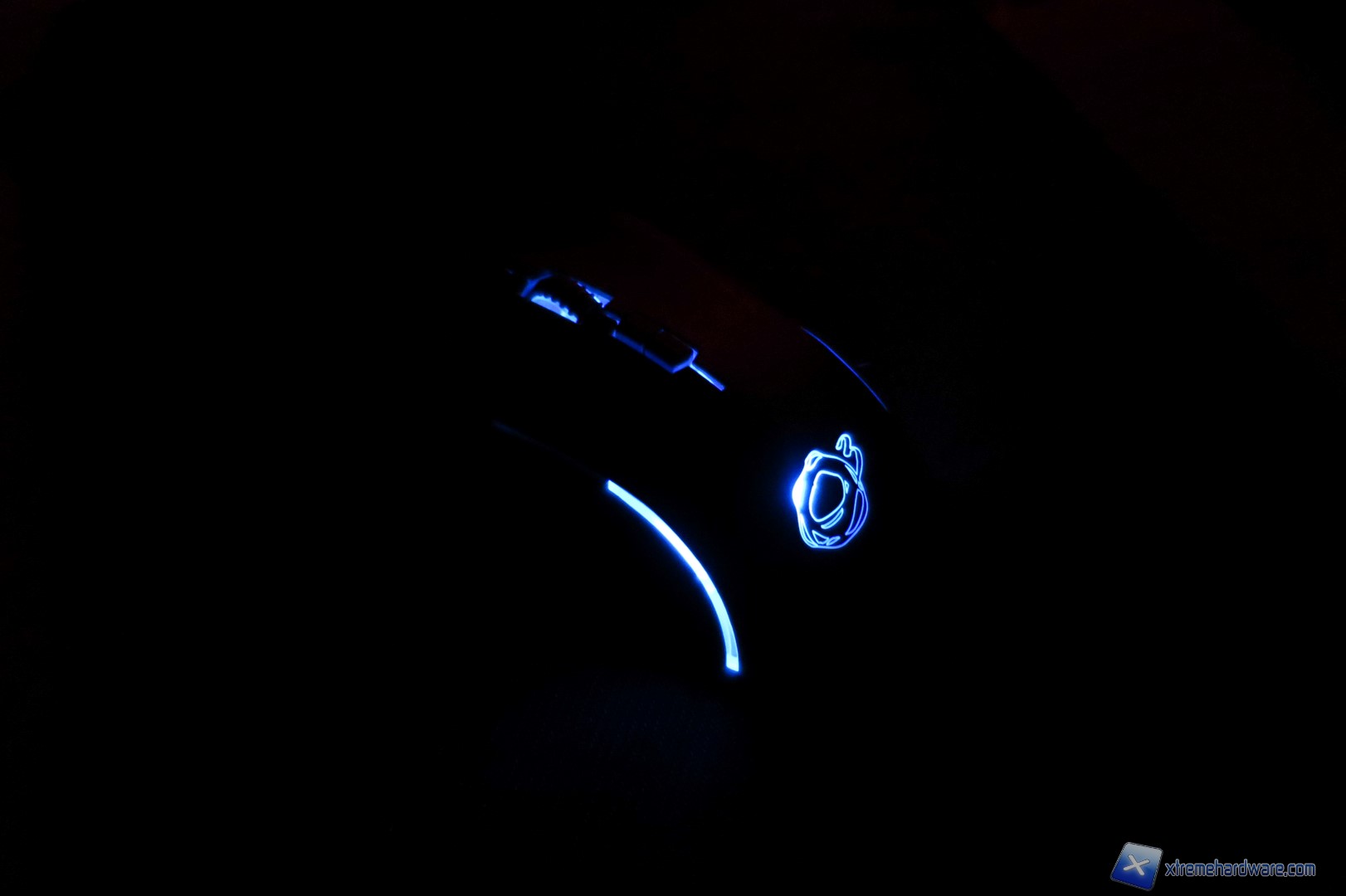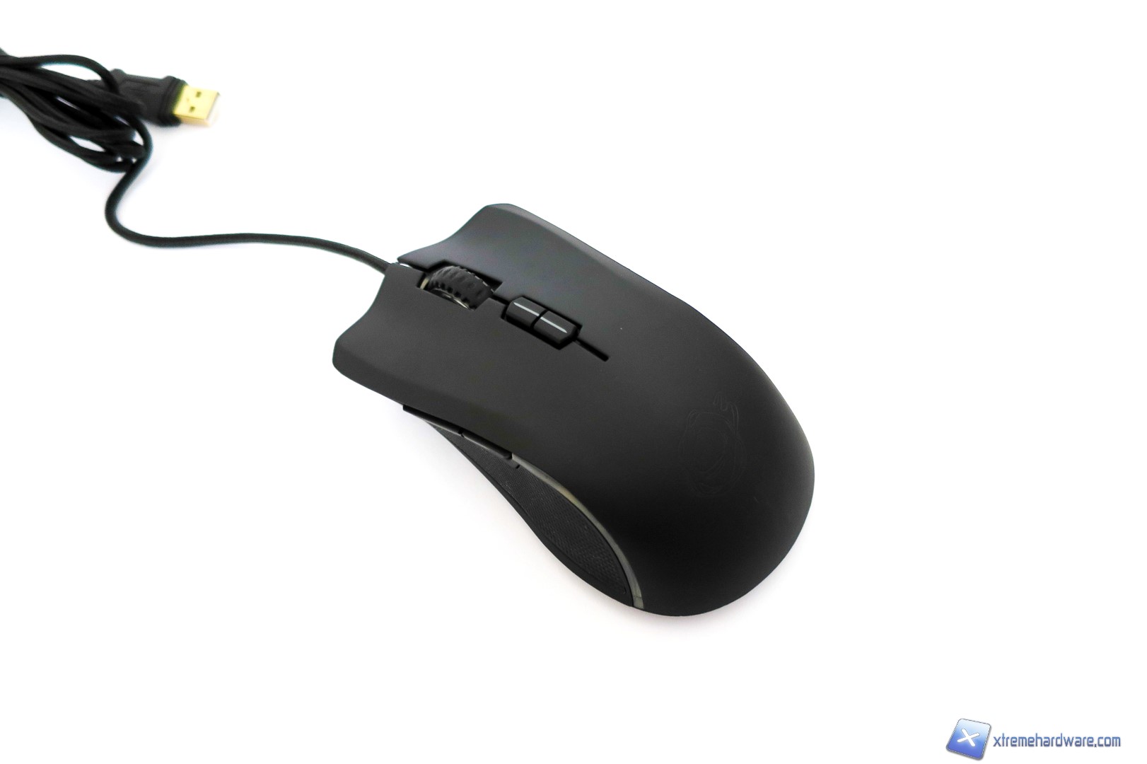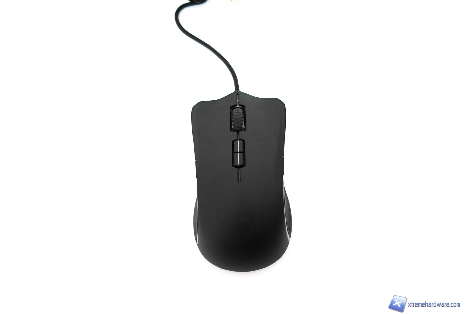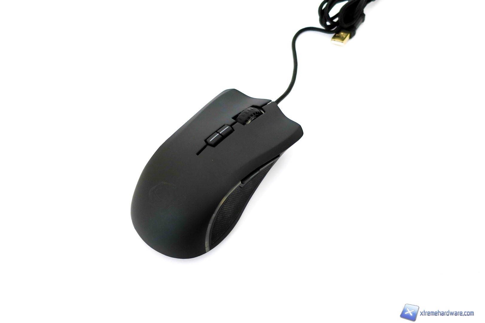 La parte frontale del mouse presenta un aspetto aggressivo dato anche dalle griglie nel alto destro e sinistro. Inoltre, notiamo la classica forma dei tasti cliccabili destro e sinistro come sia perfettamente ergonomica e incava in modo tale da posizionare le dita facilmente e naturalmente.