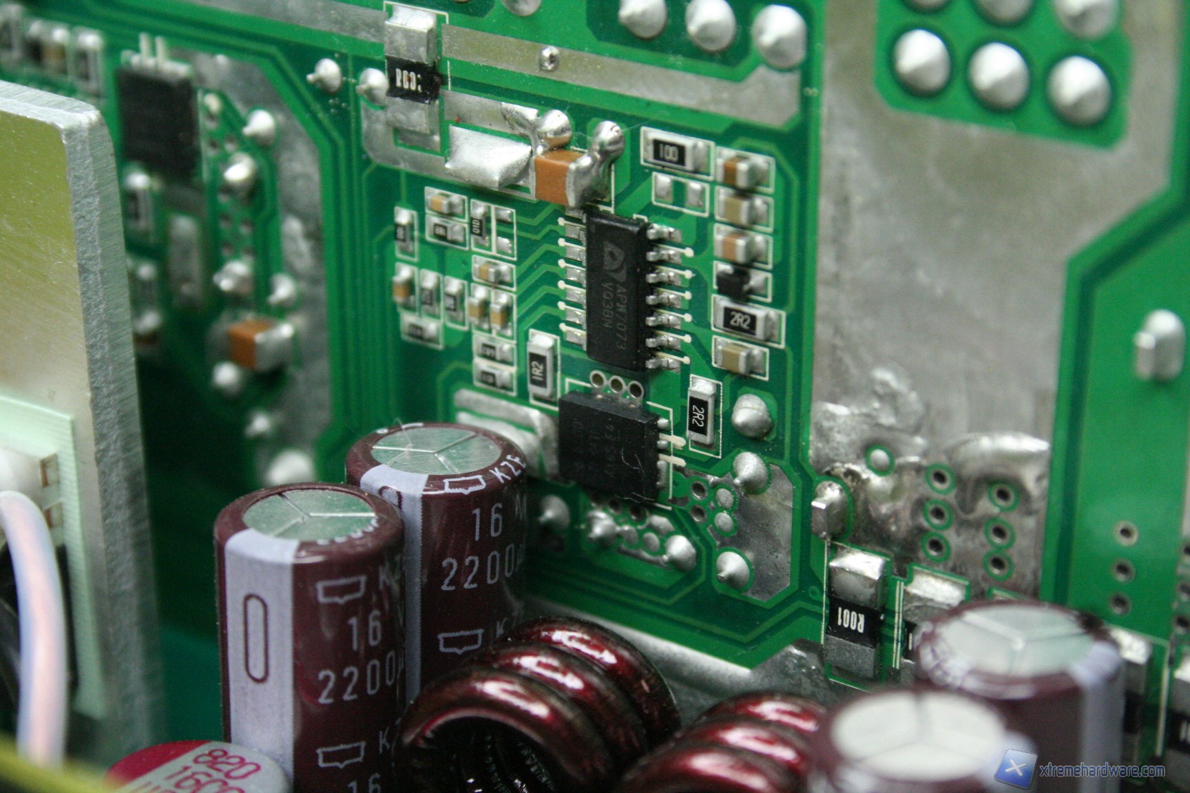 Non essendo stato possibile smontare l'unità, non siamo stati in grado di osservare direttamente i controller posteriori, anche se stando a quanto riportato da altre testate, siamo dinanzi ad una coppia ben nota, PS223 e CM6901 PWM. Troviamo anche un'altra componente, visionata nel corso della recensione del SilverStone SFX 600W, l'APW7073 "Synchronous Buck PWM Controller":