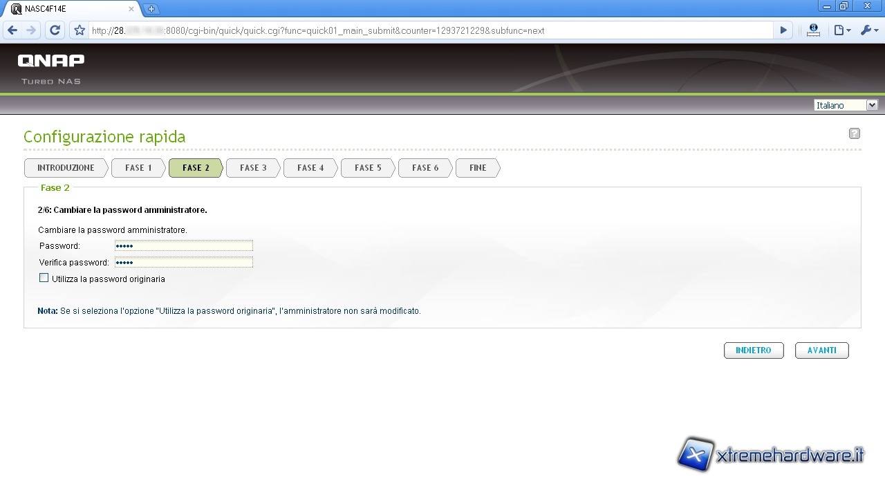 In questa schermata possiamo impostare la password dell’amministratore.